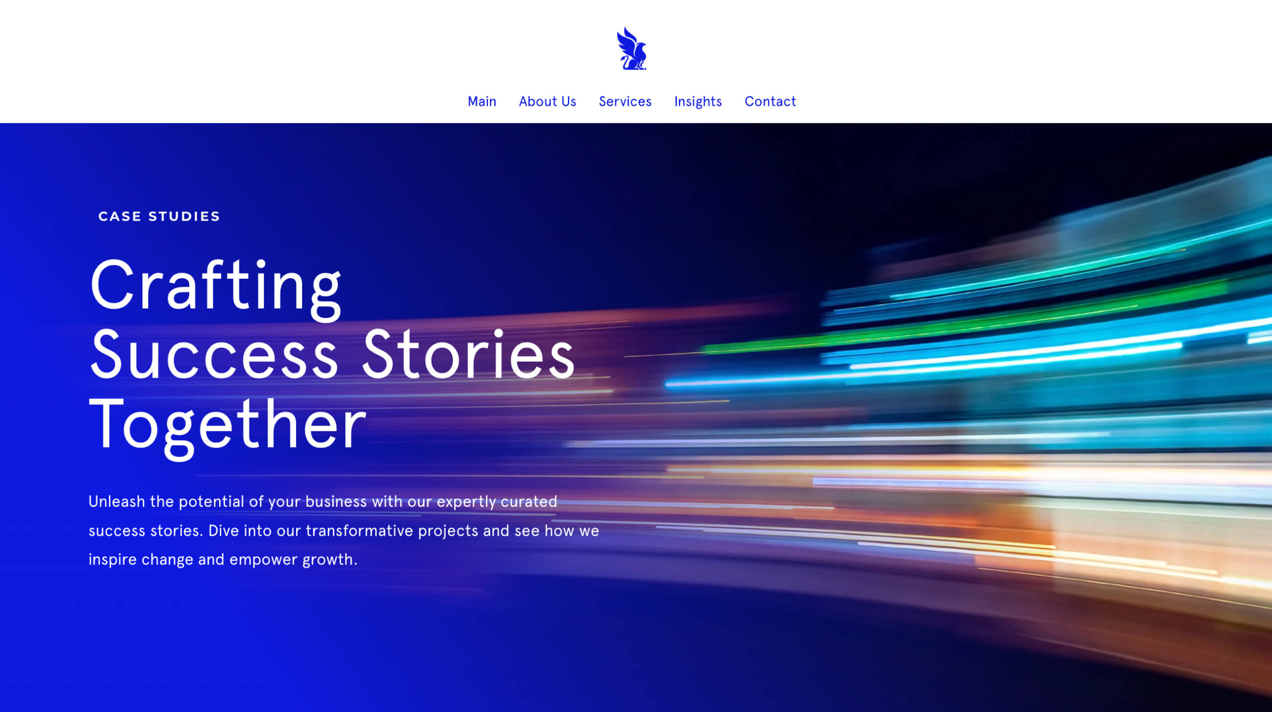Electric and French blues anchored by crisp white. A griffin, steady and sure, the emblem of a brand that earns its authority through substance. Headlines are clear, grids disciplined, motion measured. The design looks like modern trust and behaves the same way, clarity that warms, confidence that doesn’t need to shout. Every touchpoint communicates the same thing: senior hands, undivided focus, world-class quality.